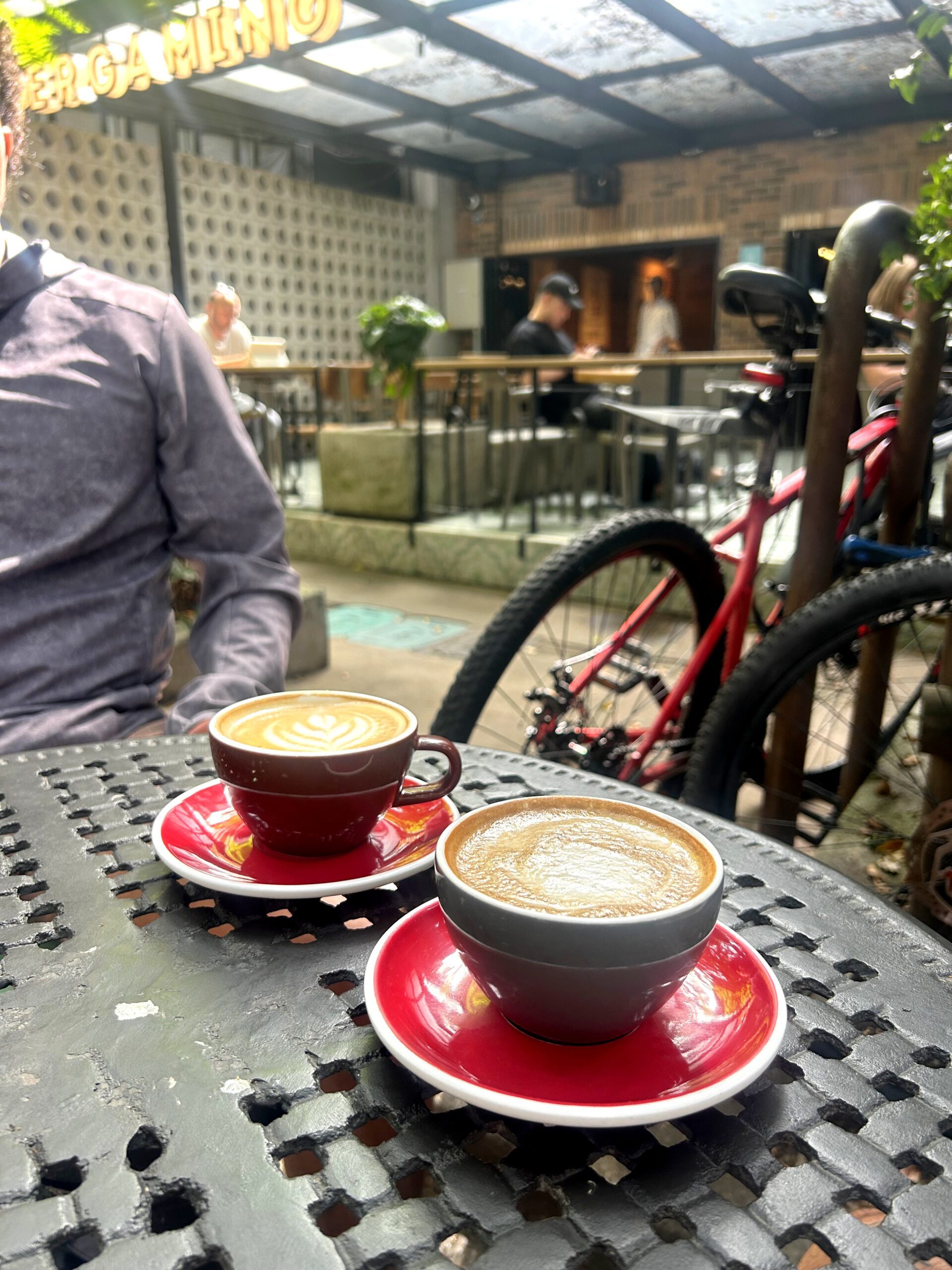 Niet veel later ontmoette ik via mijn hostel twee reizigers: een jongen uit Mexico en een uit Engeland, die allebei in de Verenigde Staten wonen. We besloten spontaan samen op pad te gaan, dronken iets in het centrum van Medellín en belandden daarna bij Pergamino, een van de populairste koffietentjes van de stad. De sfeer was ontspannen, de koffie geweldig, en het gezelschap gezellig — precies zoals ik het graag heb.