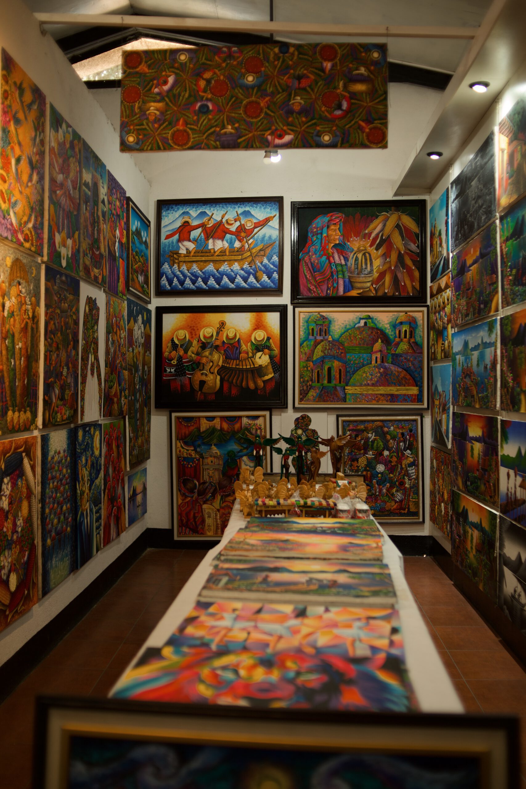 Daarna liepen we langs prachtige artisanale souvenirwinkeltjes, vol schilderijtjes en handgemaakte kunstwerken. Wat mij vooral opviel, waren de vele kolibries die steeds weer terugkomen in de ontwerpen, je ziet ze overal. Vervolgens nam Luz ons mee naar een kledingwinkel waar alle items met de hand worden gemaakt door sterke Guatemalteekse vrouwen. De opbrengst van deze kleding gaat naar verschillende goede doelen, waaronder de vrouwen zelf. Ik kreeg in het Spaans uitleg over het hele proces en merkte hoe fijn het voelt dat ik me tegenwoordig steeds beter kan redden in het Spaans. Ik mocht zelfs zelf katoen wikkelen.