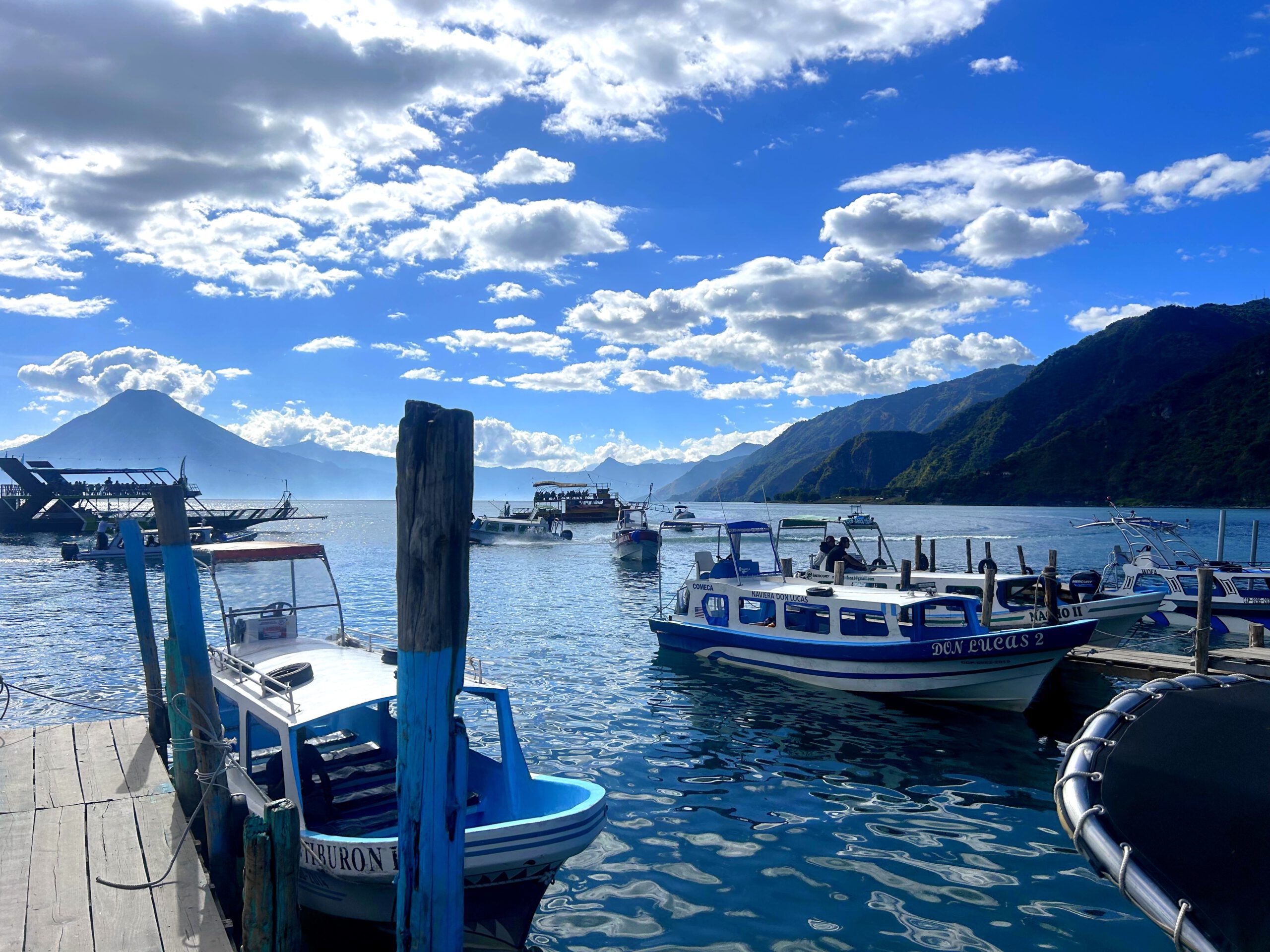 Lake Atitlán itself is a volcanic crater, located at over 1,000 meters above sea level and surrounded by several volcanoes — a truly special place. The atmosphere around the lake is very calm and laid-back, and even the boat rides alone feel like an experience. Scattered around the lake are small villages, each with its own unique charm. Exploring those villages was the plan for day two, together with Ella and the guys. Day one, however, I intentionally kept slow: staying at the hostel, soaking it all in, and working on my content.