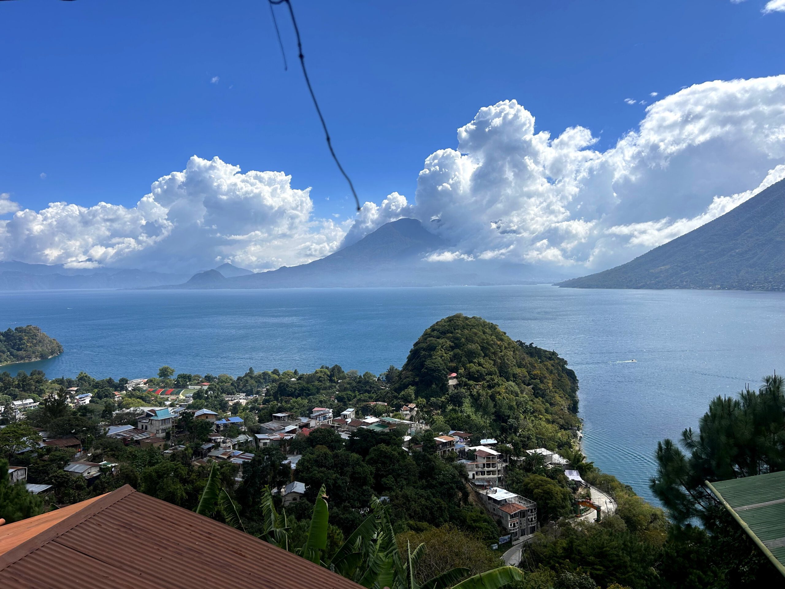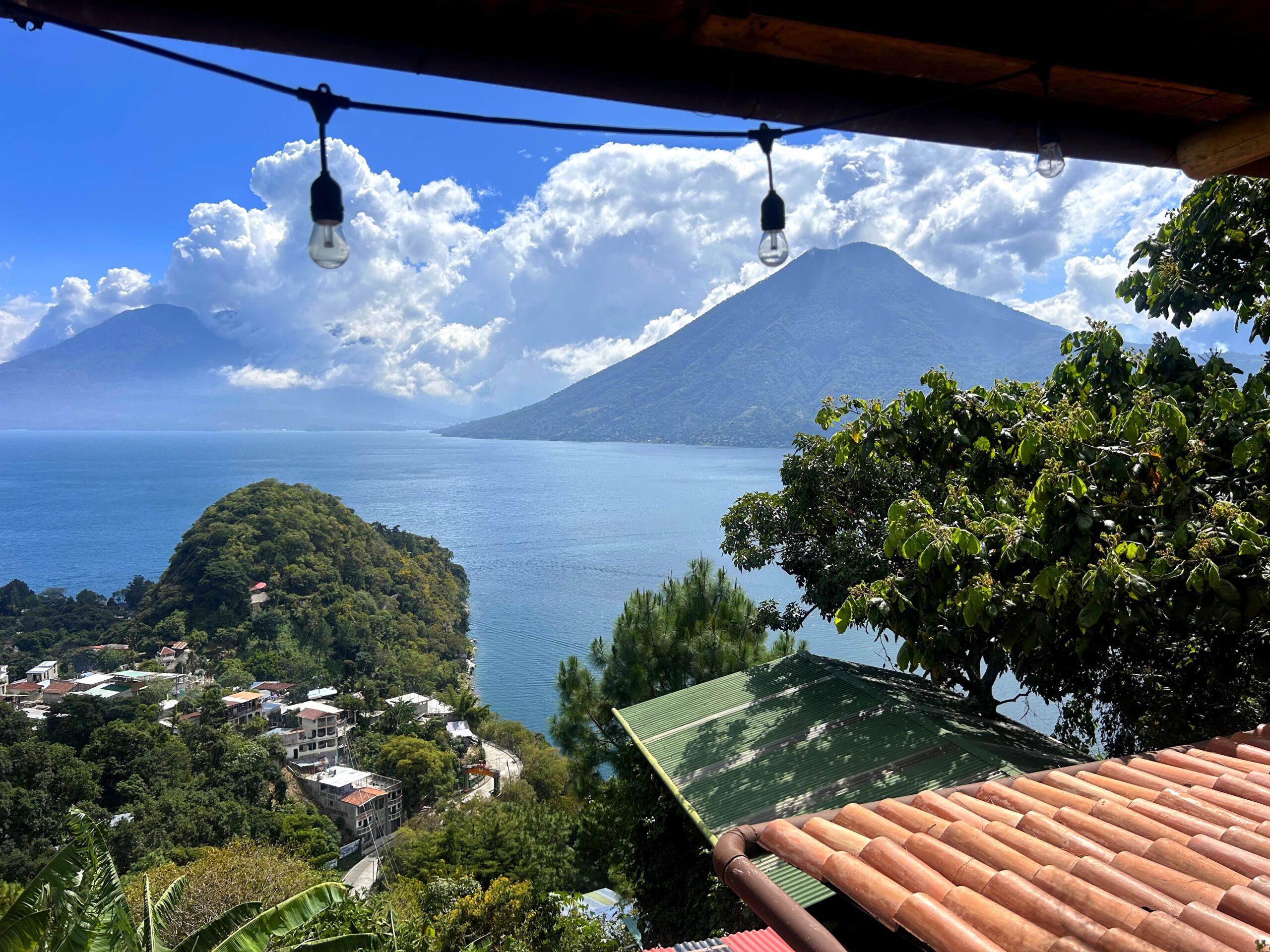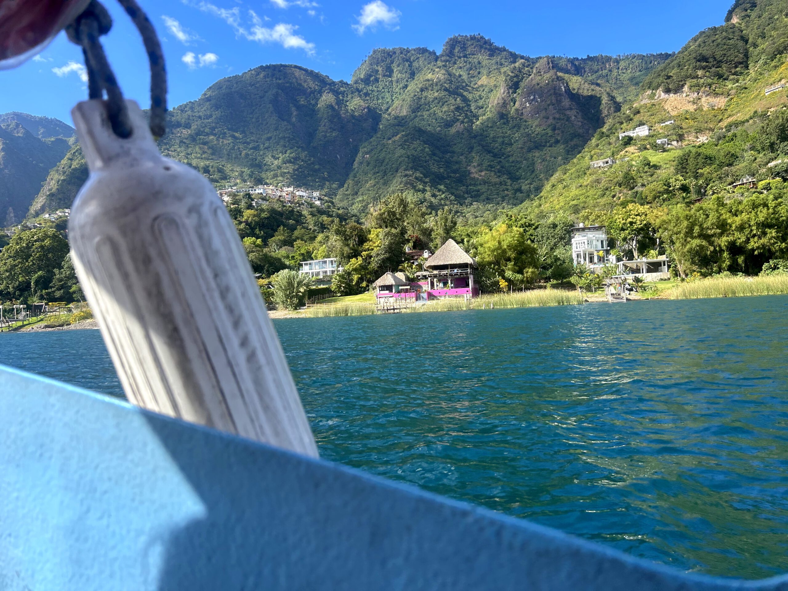 Lake Atitlán zelf is een vulkaankrater, gelegen op ruim 1.000 meter boven zeeniveau en omringd door meerdere vulkanen. Een werkelijk bijzondere plek. De sfeer is er enorm ontspannen en zelfs de bootritjes alleen al zijn een ervaring op zich. Rond het meer liggen verschillende kleine dorpjes, elk met hun eigen charme. Het plan voor dag twee was dan ook om een aantal van die dorpjes te verkennen, samen met Ella en de jongens. Dag één hield ik bewust rustig: ik bleef in het hostel, genoot van het uitzicht en werkte aan mijn content.
