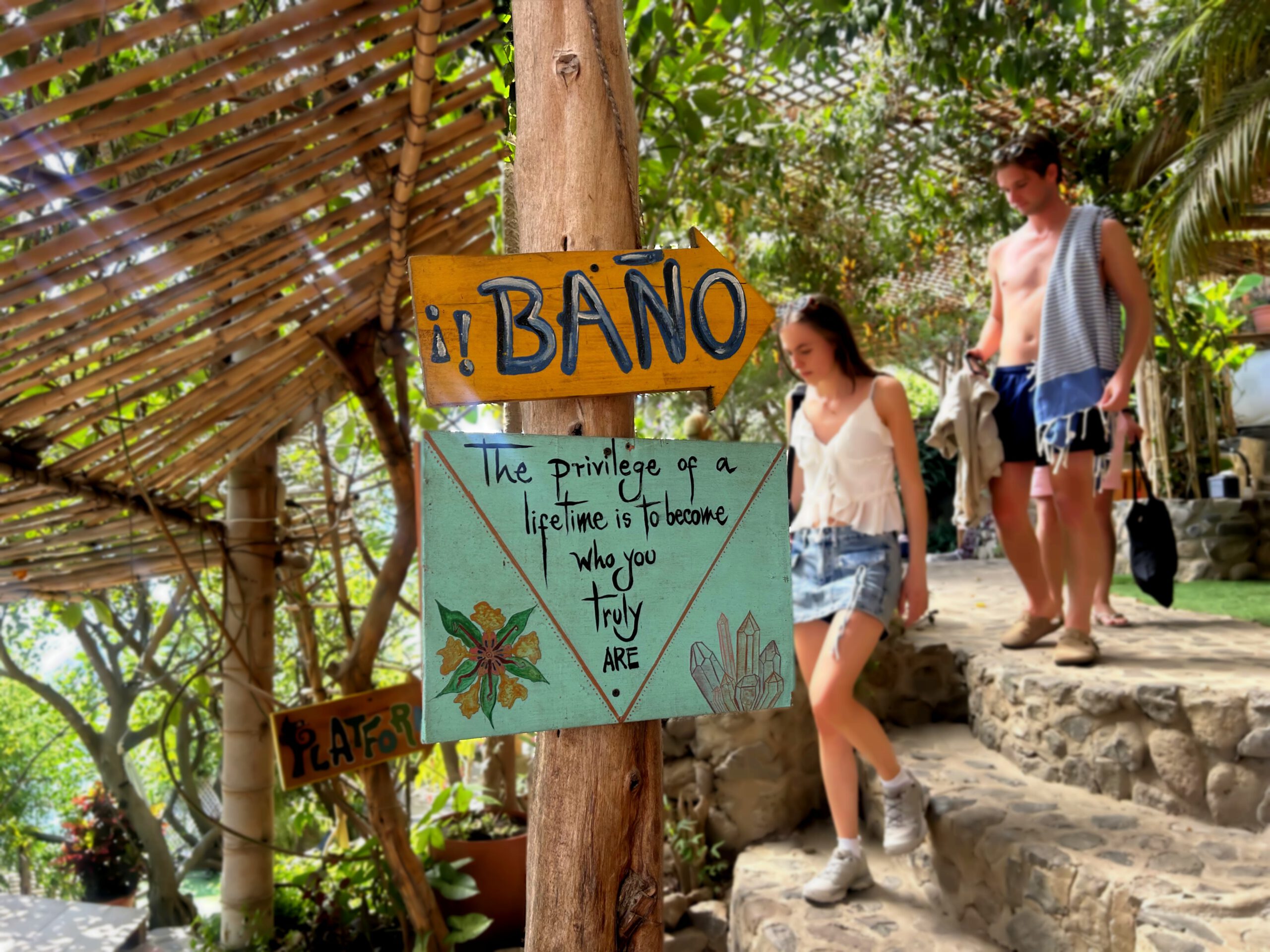 De boottocht zelf was, wederom, ongelooflijk mooi. Onze eerste stop was San Marcos. We ontbeten bij Circles Café, een van de populairste cafés rond het meer. Ik bestelde een XL cappuccino en een Snickers-ontbijtkom, samen goed voor ongeveer 70 quetzales, zo’n €7. Na het ontbijt brachten we een tijdje door met slenteren door het dorp en de smalle straatjes, voordat we naar het beroemde Adelaarsnest liepen. Het is een prachtig uitzichtpunt waar vaak yoga- en wellnesslessen worden gegeven. Toen we aankwamen, was er net een yogales bezig, dus we konden het platform zelf niet verkennen, maar het was toch bijzonder om er te zijn. De sfeer deed me zelfs een beetje denken aan Tulum.