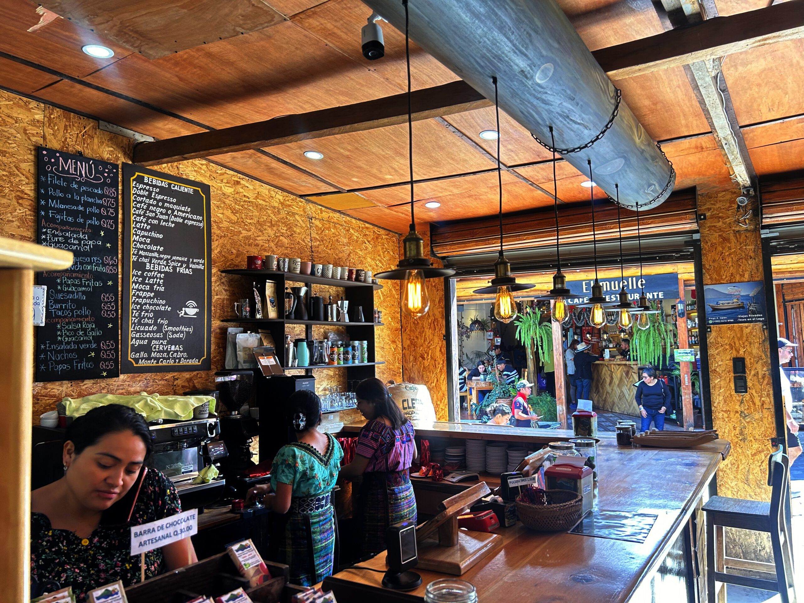 To end the day, we visited a cacao museum, where we enjoyed a cup of cacao and a small bite to eat. I also picked up a few cacao souvenirs there. Along with coffee, cacao is one of the most important and widely sold products in Guatemala, and tasting it there, in that setting, made it even more special.