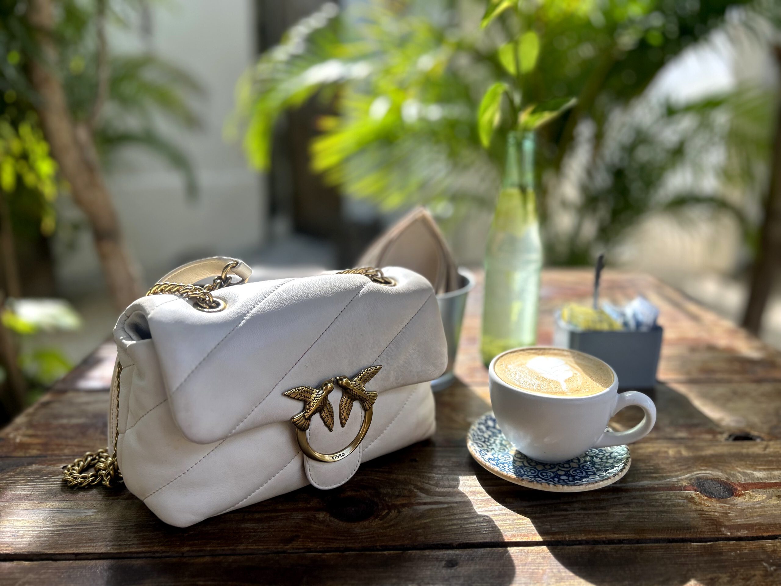 Na het museum gingen Aline, Christy en ik ons omkleden, en daarna dronken we koffie bij Dos Ceibos, een beachclub in de hotel zone waar — kleine tip — je geen minimum besteding hebt. Ja, zulke plekken bestaan dus nog in Tulum. We zaten met onze voeten in het zand, koffie in de hand, de oceaan voor ons… totdat het ineens zachtjes begon te regenen. Dus fietsten we terug naar downtown en sloten de dag af met een diner bij mijn vaste favoriet: La Negra Tomasa.