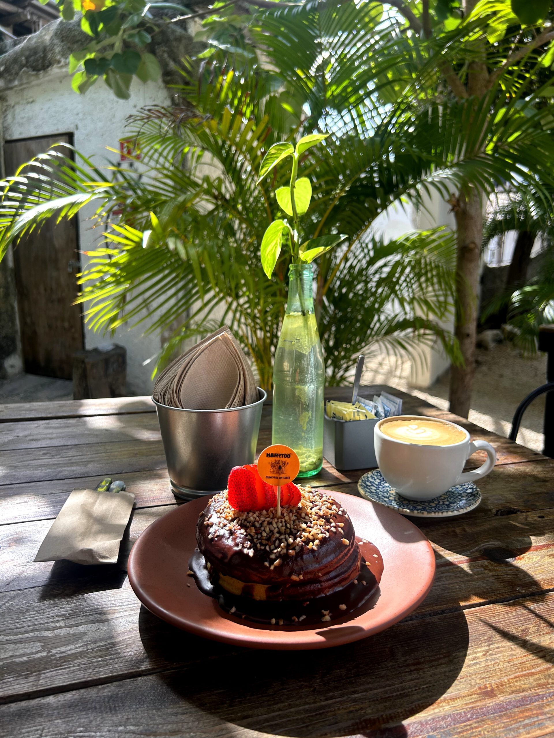 Ik bestelde hier de chocolade pannenkoeken, die bedekt zijn met een laag pure, ongezoete cacaosaus. De portie was perfect: niet te groot, niet te zoet, en die rauwe cacao maakte het helemaal af. Als ik terugkom in Tulum, weet ik zeker dat ik hier opnieuw naartoe ga.