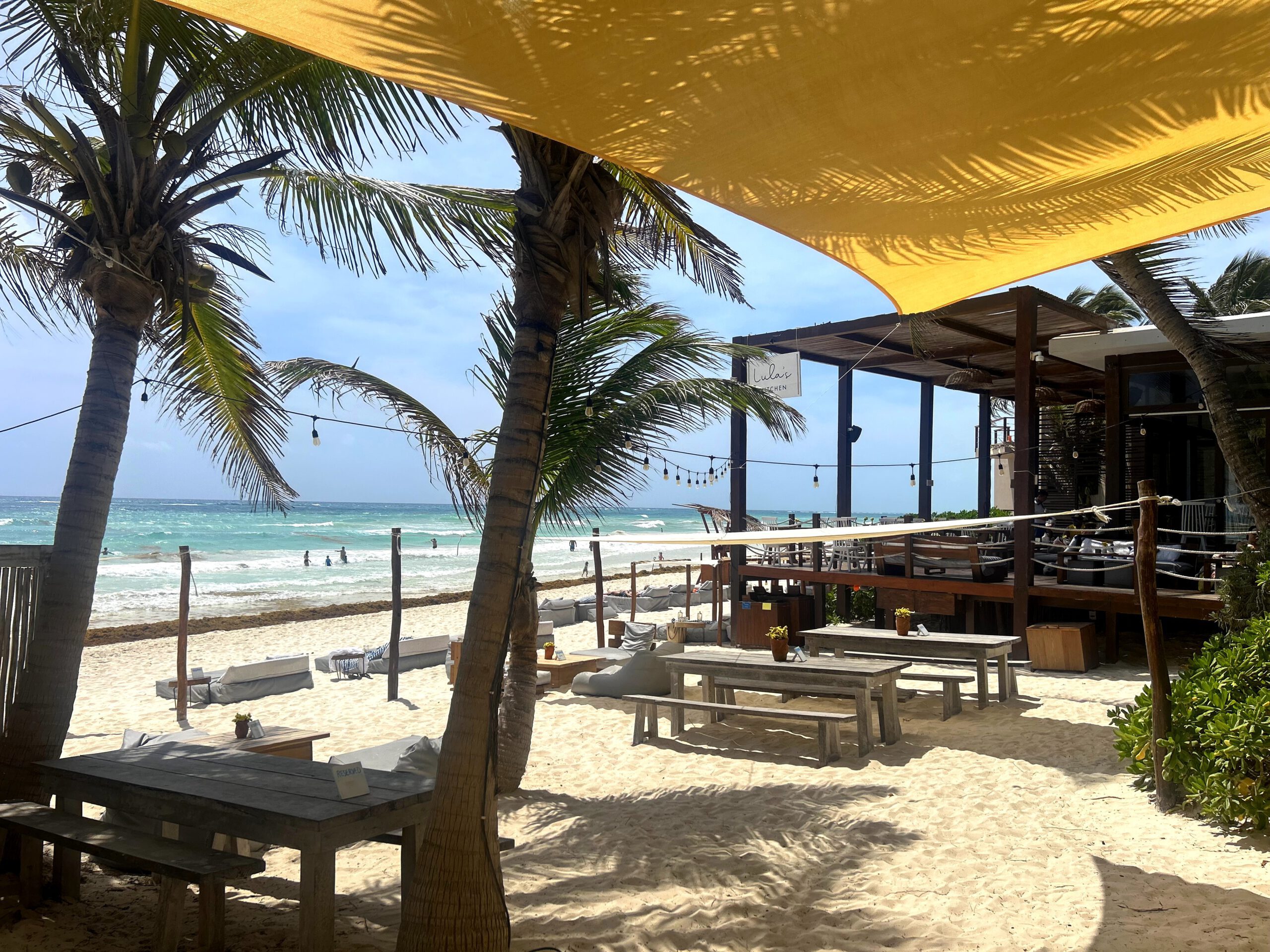 Later, my dear friend Cyni picked me up and we drove to Lula, a beach club in the hotel zone where you don’t need a minimum spend for a sunbed. I find the atmosphere there incredibly relaxing — it somehow gives off a soft Scandinavian vibe. We spent a few hours just enjoying the sun, and of course, I started to tan immediately. That afternoon, I stayed with Cyni and Leon at her apartment. We ran a few errands together — groceries, picking up packages, some household bits. Simple things, but they made me feel like I was living in Tulum rather than just visiting. There’s something really grounding about that.
