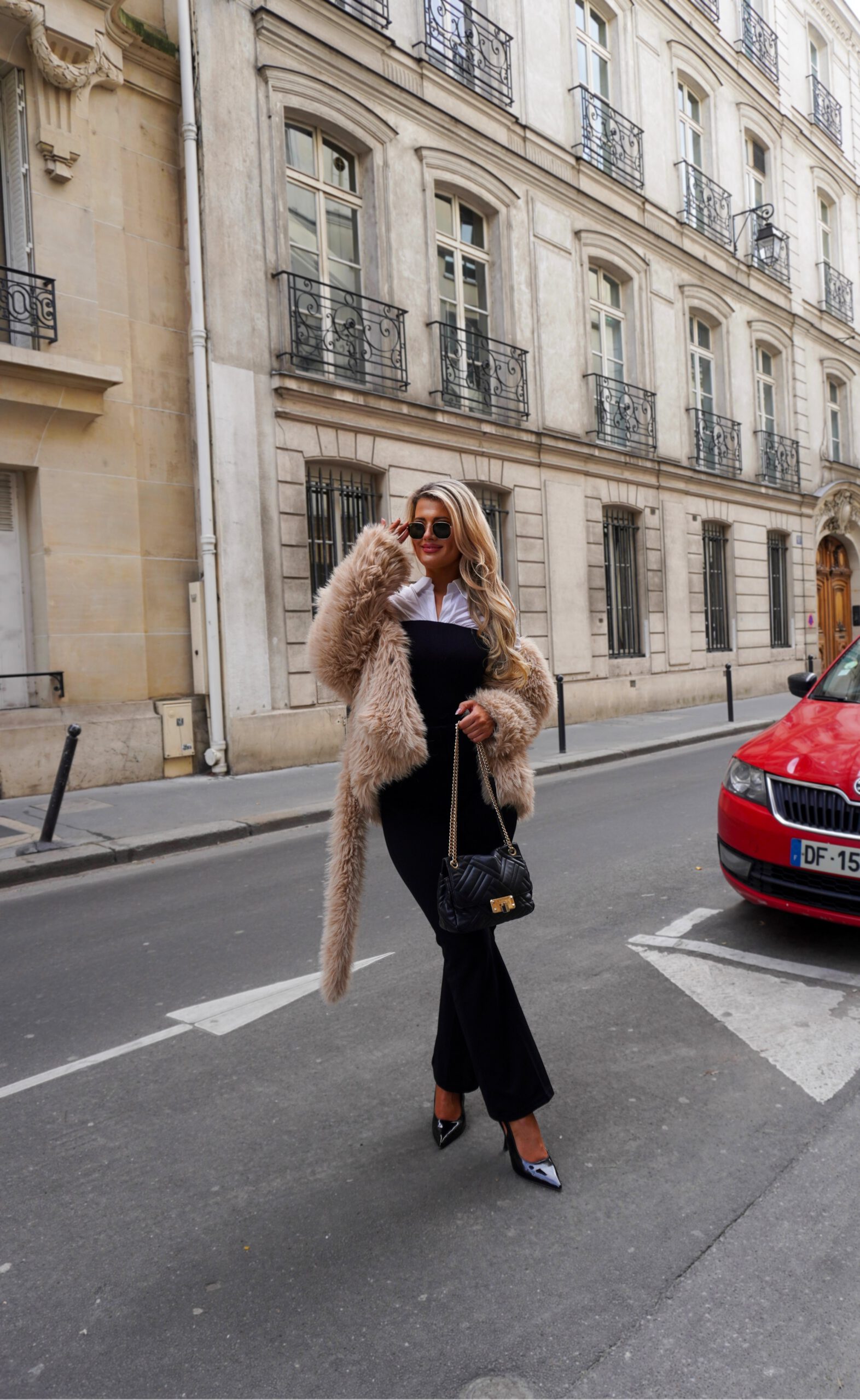 This outfit shoot was exactly a month ago and was done by a flying colleague in Paris with whom I have a very special bond 😉 I thought this was a super fun outfit especially for Paris and wore it to go out with him during the day. Perfect for a day in Paris and great for a coffee, exploring, brunch, or just relaxing on a terrace. And believe it or not – I lasted 8 hours in these heels! Beauty pageants secretly teach you quite a lot 😉