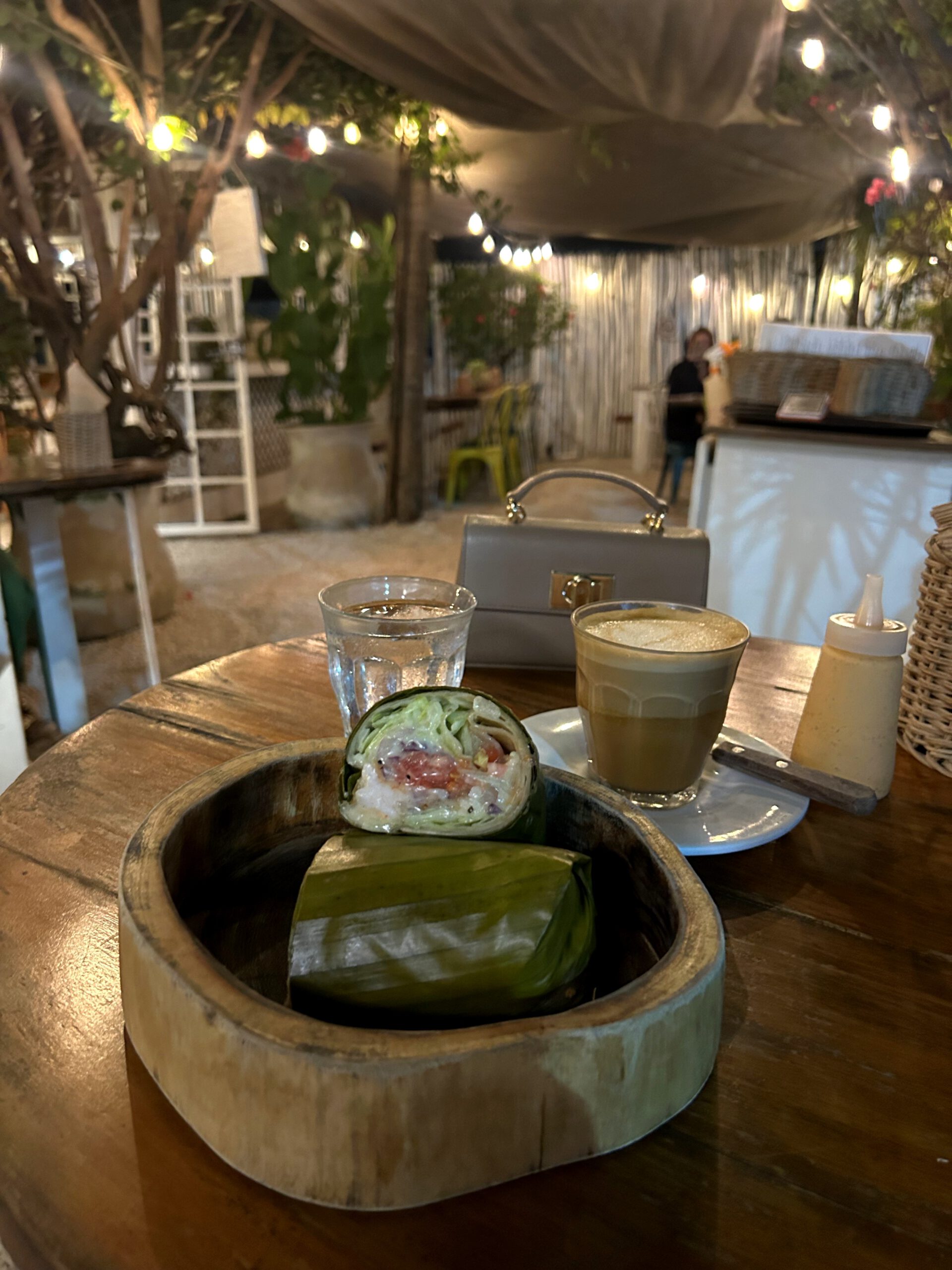 On my bike from Tulum Bike Rental (iBike Tulum – @bike.tulum), I cycled to Nimeño Zama. Nimeño has several locations around Tulum, which is so convenient. I ordered their sourdough (honestly the best sourdough bread I’ve ever had) with avocado and egg, plus their delicious cappuccino. The staff there is always so kind and hardworking too. Small tip if you’ve never been to Mexico before: tipping is very normal here, similar to the US – at least 10%.