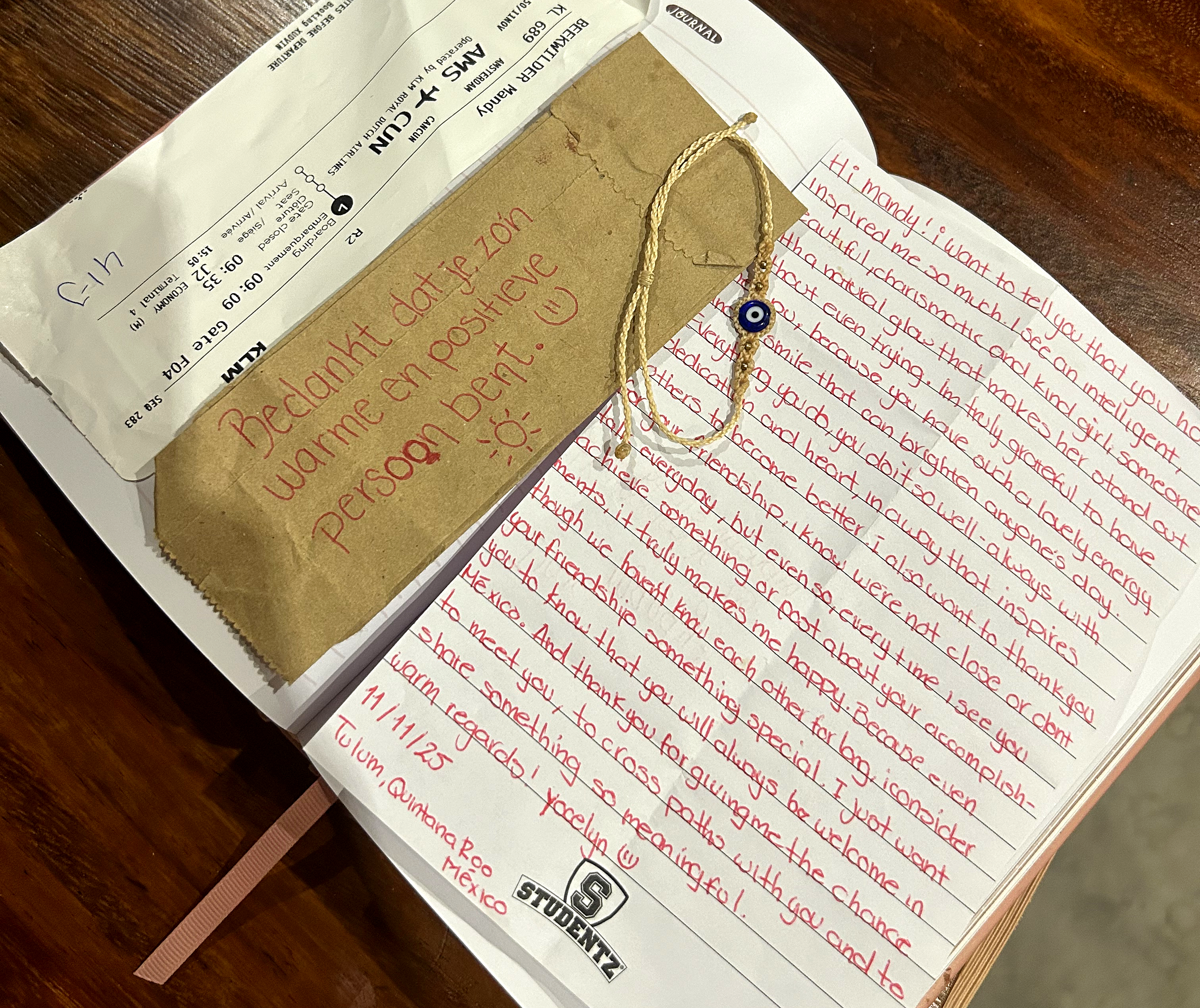 Day 5 – Tulum – 15-11-2025This time I went back to Harttoo, because Yocelynn works there – a very sweet Mexican girl I met in 2024. As a little surprise, she treated me to a cappuccino, an incredibly delicious chocolate cinnamon roll, and a handwritten note with a bracelet. I honestly couldn’t help but tear up. A letter I will always cherish, and one of the kindest gestures I have ever received from someone.