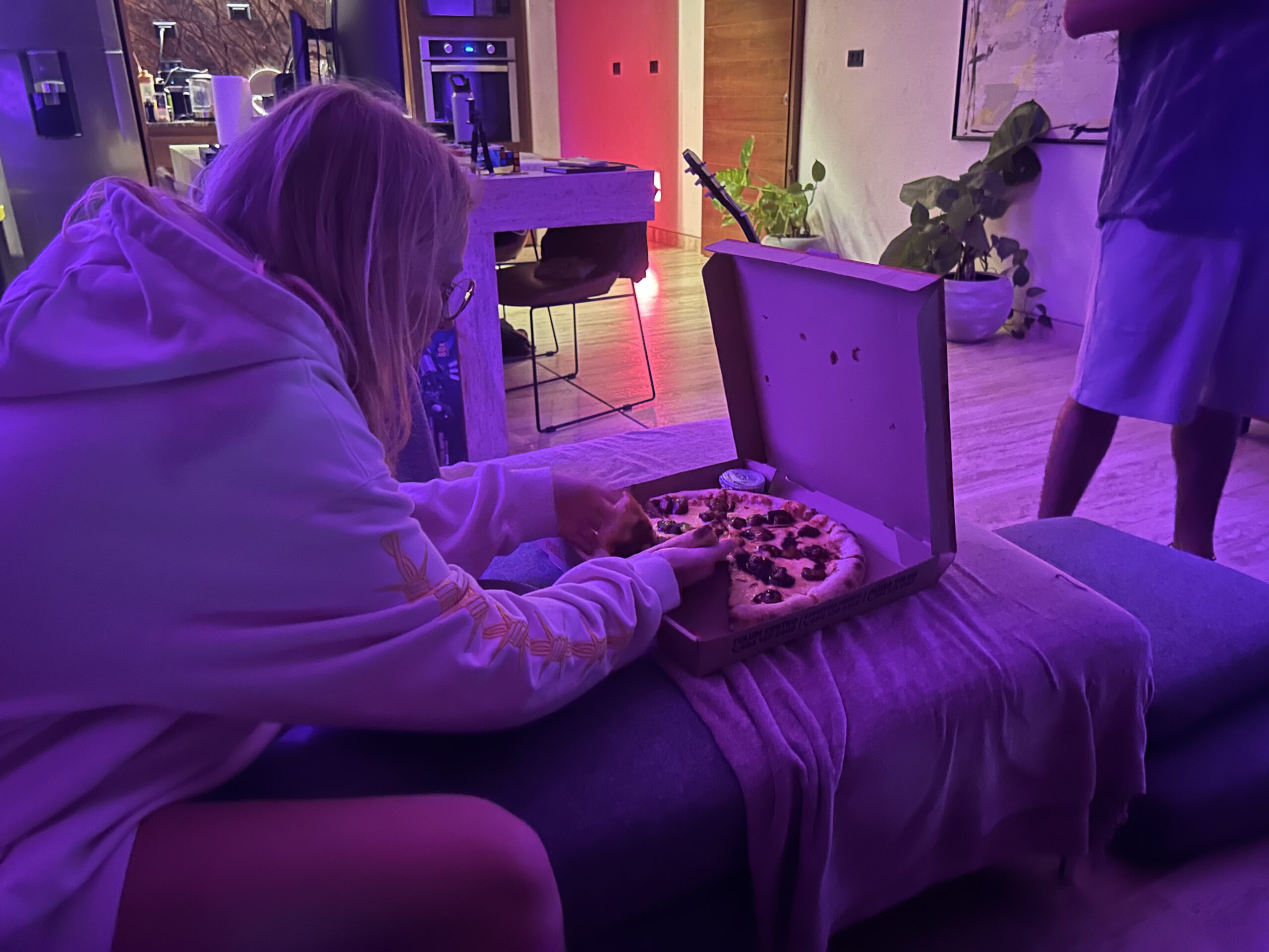 To end the day in a cozy way, I treated Cyni to a warm hot chocolate, and later the three of us – Cyni, Leon, and I – had a movie and pizza night at their apartment in Aldea Zama.