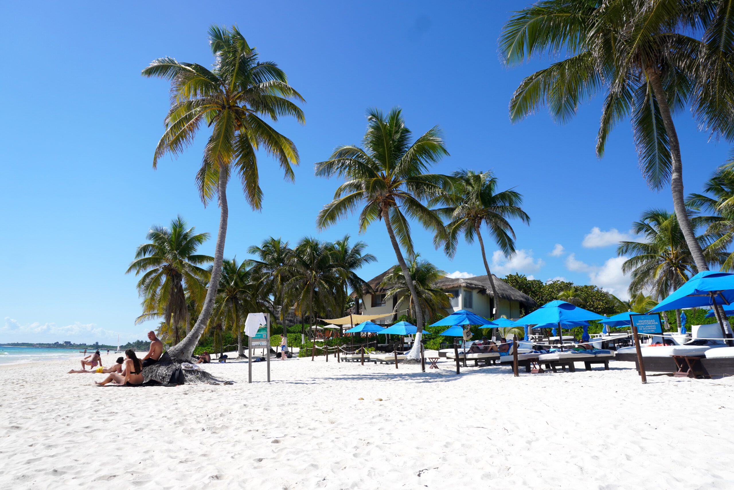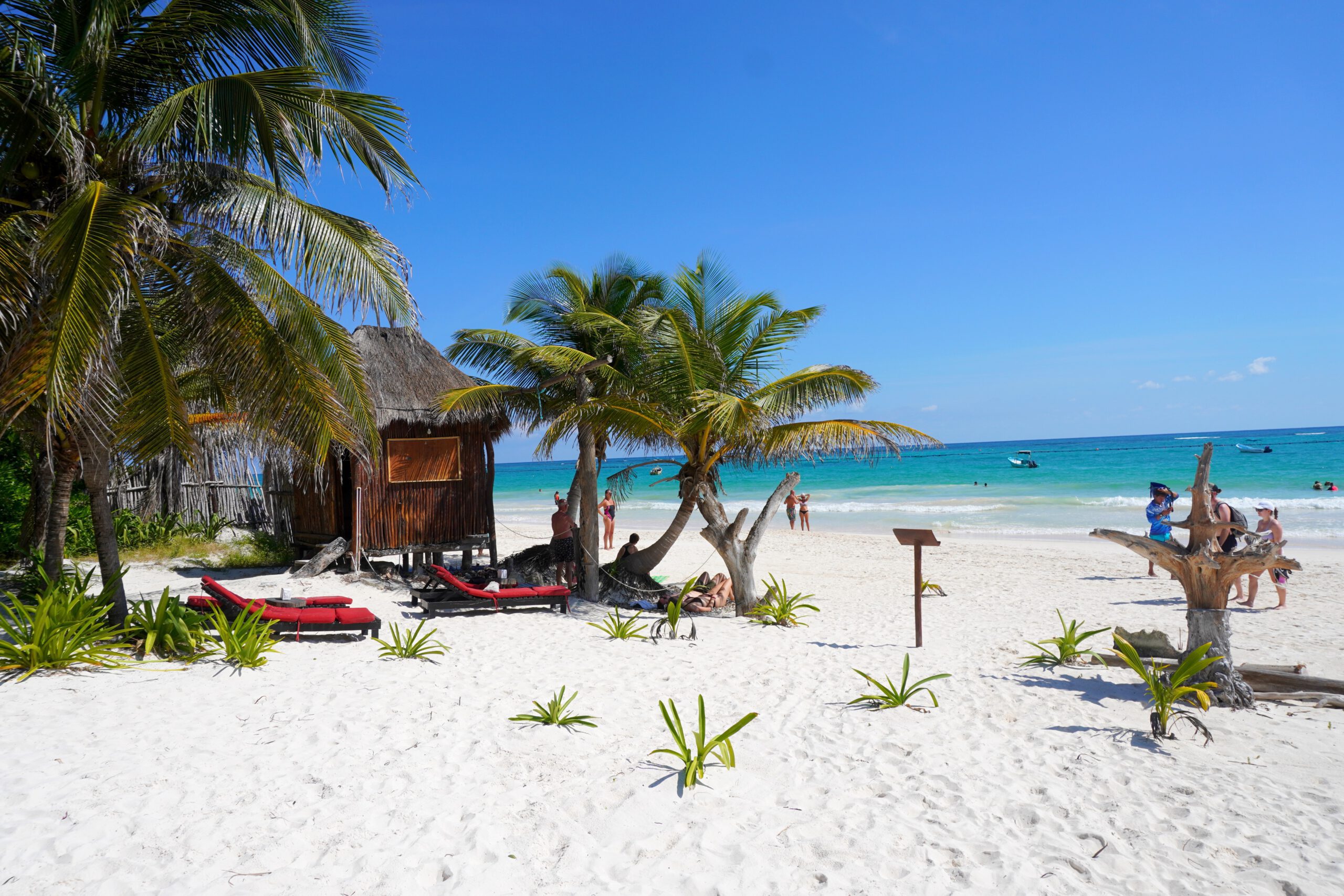 Niet veel later haalde mijn lieve vriendin Daniela me op en zijn we samen richting het strand gegaan. We kozen voor Ikal, een van mijn favoriete beachclubs/hotels bij Public Beach, ter hoogte van Playa Maya. De prijzen voor dit strand veranderen hier trouwens voortdurend. Het was eerst gratis, toen 60 pesos, daarna zelfs 420 pesos (wat echt pijnlijk was), waardoor ik – net als veel anderen – even dacht dat Tulum misschien niet meer haalbaar zou zijn. Inmiddels is het 120 pesos geworden, ongeveer 6 euro, en op zondag zelfs gratis. Dat geeft toch weer wat hoop, zeker omdat veel mensen Tulum begonnen over te slaan door deze prijzen, in combinatie met het zeewier en de problemen met taxi’s, wat de lokale economie echt heeft geraakt.