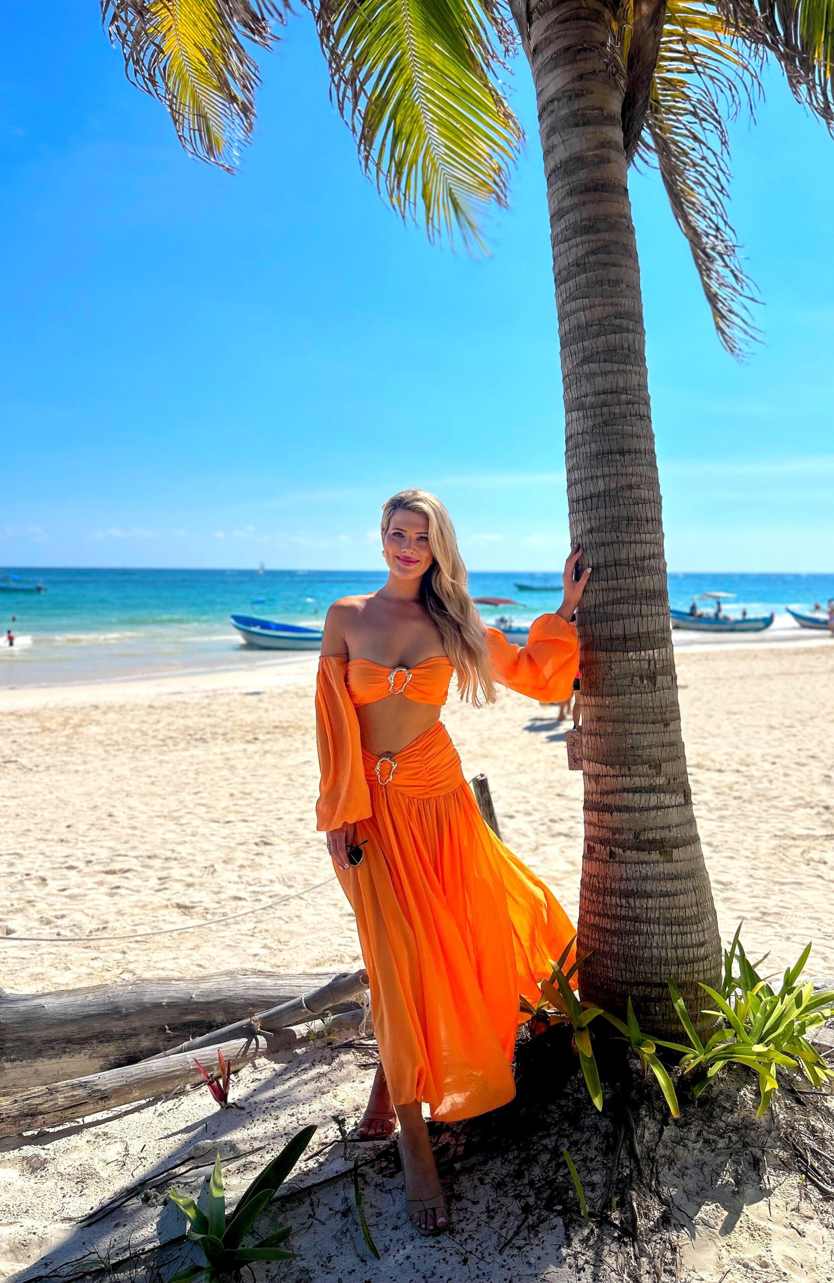 Ik begon mijn ochtend heerlijk in deze geweldige villa. Ik ben zó verliefd op deze plek dat mijn hele Instagram er inmiddels vol mee staat. Ook heb ik hier veel outfitfoto’s gemaakt. Ik werd ontzettend uitgerust wakker, maar vooral ook met een diep gevoel van dankbaarheid en zegeningen – dat ik zulke prachtige kansen mag krijgen sinds mijn eerste reis naar Tulum in 2022. Mijn leven is enorm veranderd door die reis. Dus als je ooit op zoek bent naar een teken om solo te gaan reizen… misschien is dit het wel voor jou.