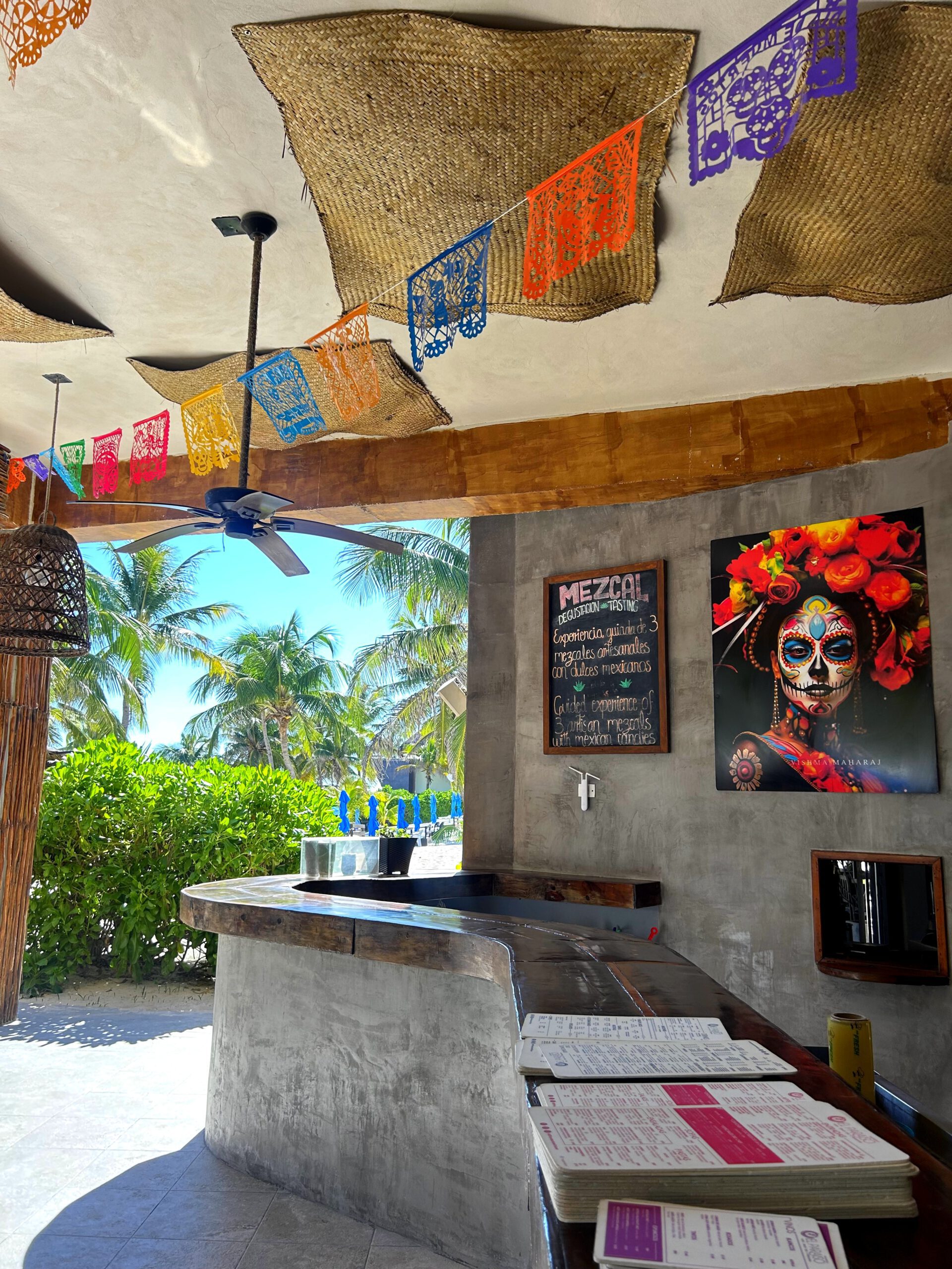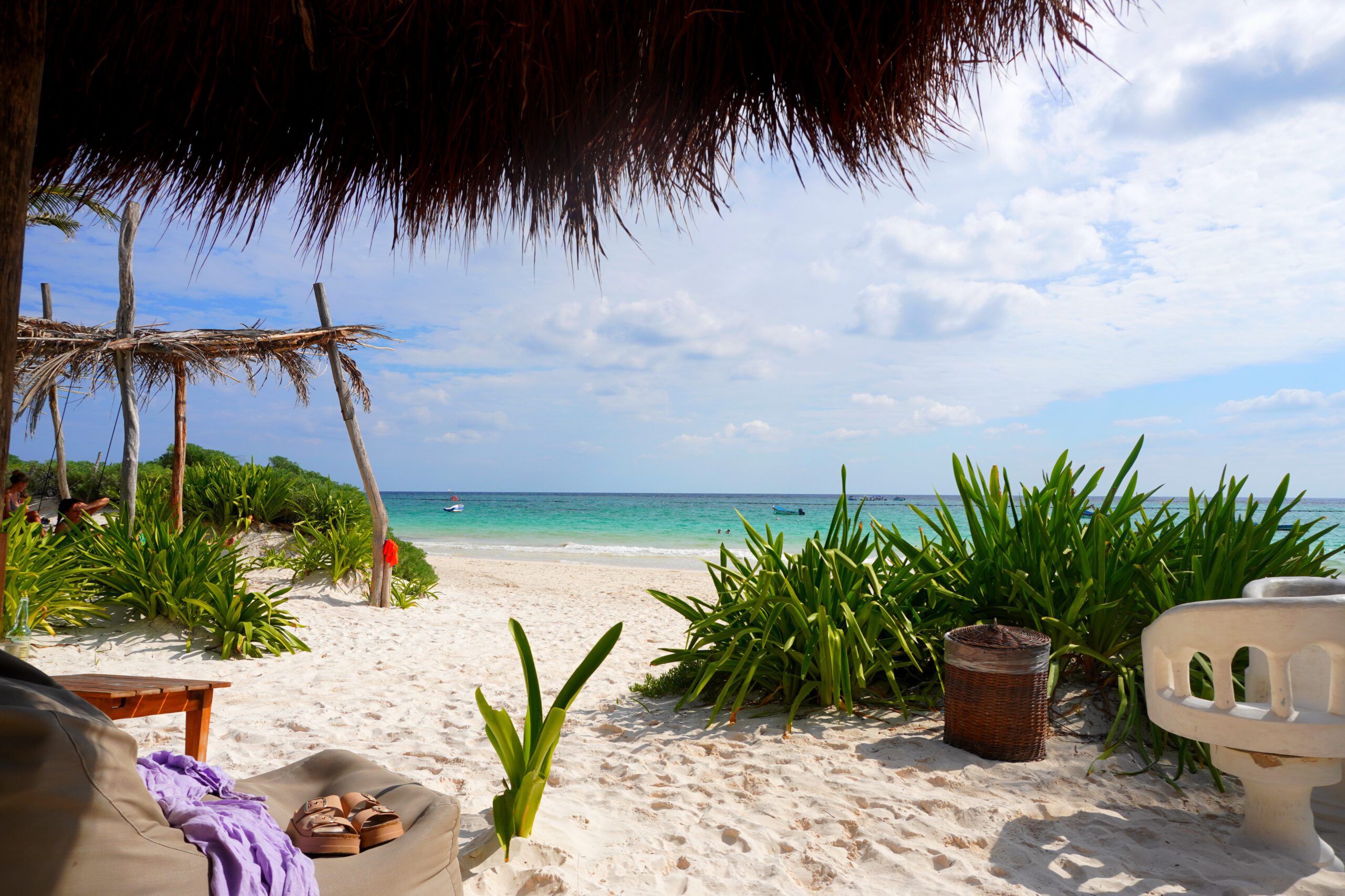 Not long after, my sweet friend Daniela picked me up and we headed to the beach. We chose Ikal, one of my favorite beach clubs/hotels near Public Beach, close to Playa Maya. The entrance prices here change constantly – it used to be free, then 60 pesos, then even 420 pesos (which honestly hurt), and for a moment it made me – and many others – wonder if Tulum would still be doable. Now it’s 120 pesos, around 6 euros, and free on Sundays. That really helps restore some trust, especially since many people started skipping Tulum because of these prices, combined with the seaweed problem and the taxi mafia, which has heavily affected the local economy.