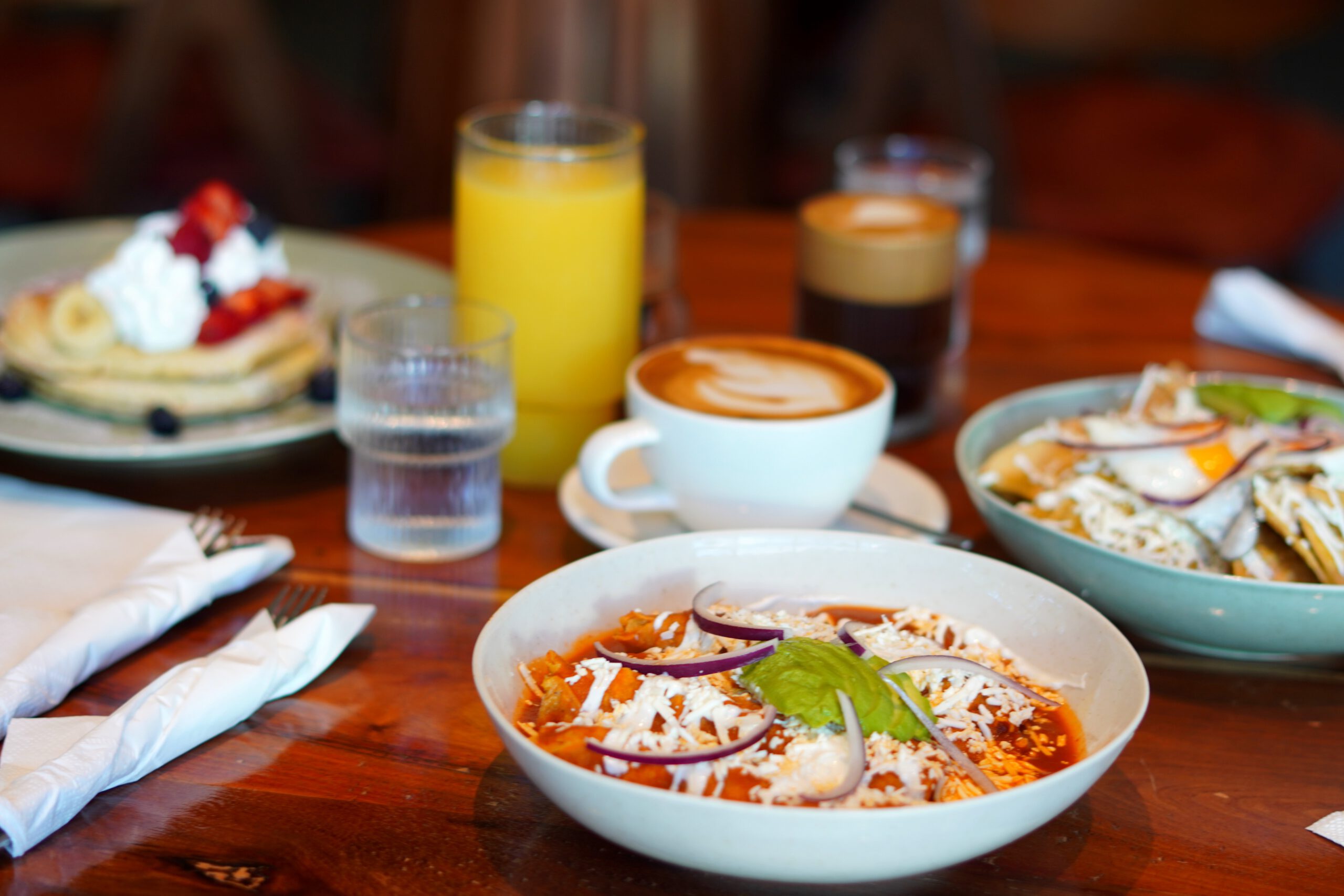 Ik vroeg Esteban en Kalle mee te ontbijten bij Zereno, zodat ik nog wat extra tijd met ze had op mijn laatste ochtend in Cancún. Rond kwart voor acht stonden ze er al – onverwacht, maar zó leuk. Ze droegen zelfs mijn backpack en tas, echte gentlemen.
